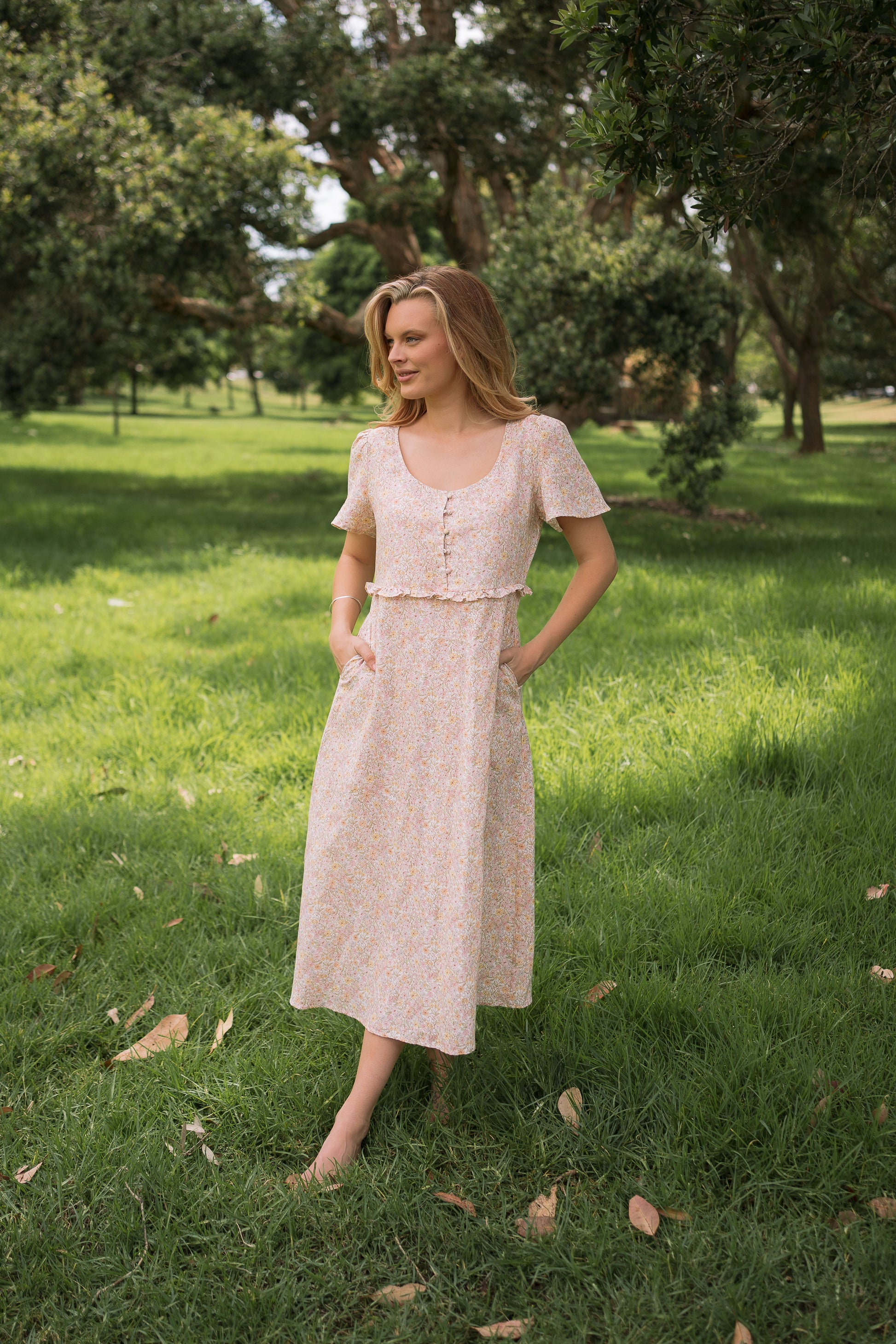 Soft, floaty and timeless, the Sunday Dress was designed with slow mornings, fresh blooms, and golden afternoon light in mind.